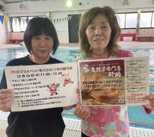 みなさんこんにちは武芸川健康プールです 12月のイベントのお知らせです(*^-^*) ↓ ↓ ↓ ↓ ◆12月2日(火)血管年齢測定会 10:00~14:00 ※リニューアルオープン記念イベント ◆12月1 […]